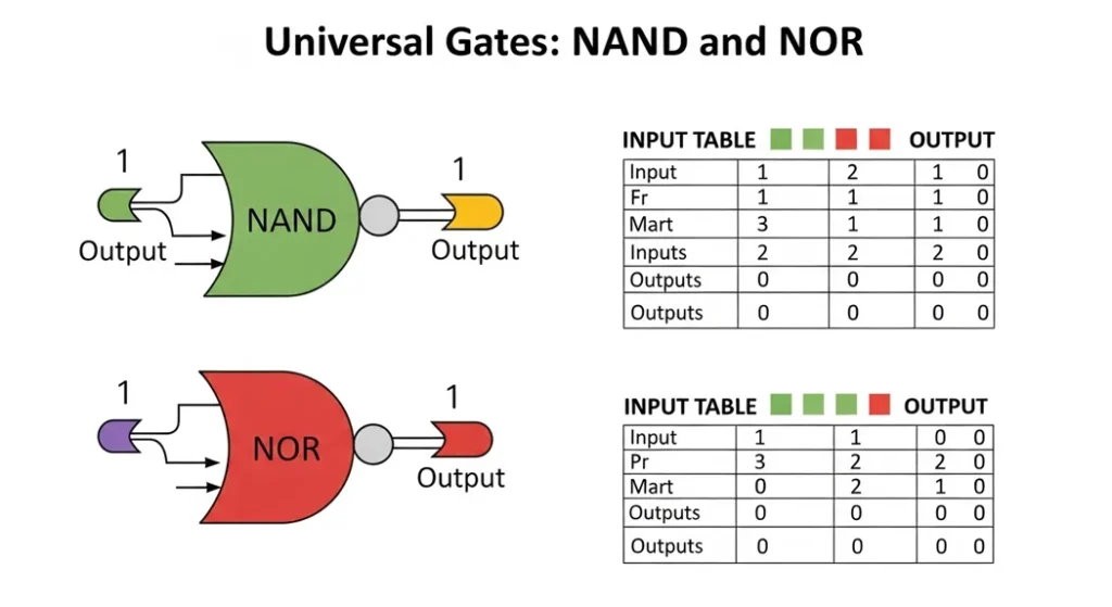 They’re called universal because any logical function can be implemented using only NAND gates or only NOR gates. This makes them extremely versatile in circuit design.