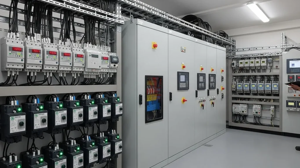 A proper motor installation relies heavily on the associated control and protection equipment. In motor control centers, contactors handle switching operations, overload relays protect against slow thermal overload, and circuit breakers protect against short circuits. Breakers are typically sized at 125% of the motor’s full-load current to allow for startup conditions.